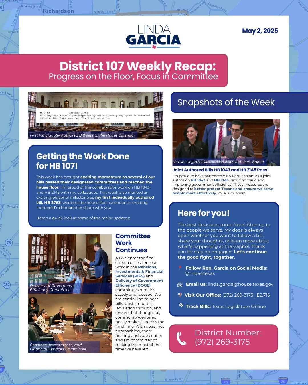 Every day at the Capitol, I’m here to represent your voices, your needs, and the values that make HD 107 strong.